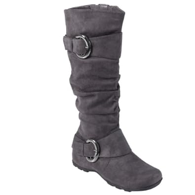 Complement your outfit with these slouchy mid-calf boots by Brinley Co. Buckle and strap details highlight the upper on these round toe boots. Soft faux suede uppers and rubber soles complete the look of these boots.