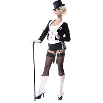 Whether it's a show for one or an audience of many, this showgirl costume will make you the center of attention. Costume includes black jacket with tails and pink accents; matching hot pants; pink corset-style top; and spats/boot covers. Cane, hat, stockings, and gloves available separately. French kiss is a sophisticated, romantic collection of costumes designed to help you fulfill your most exciting dress-up or Halloween fantasy. French kiss costumes focus on innovative designs with detailed embellishments. With lots of design choices, you're sure to find one that fulfills your fantasy. French kiss because romance never goes out of style.