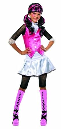 Draculaura is Monster High's favorite vegan vampire. Costume is available in children's small (size 4 to 6), medium (size 8 to 10) and large (size 12). Hand wash cold, line dry. Rubie's has the licensed characters your kids want to be at Halloween and all year long.