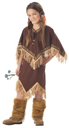 My daughter loved this costume and it looked great on her. She is 5 years old and it would definately fit her next year as well. She is about 45" tall. I put a shirt on underneath to keep her warm on a cool night and bought a pair of mocassins to finish this outfit. Pretty decent quality except for the leg coverings, the string that ties around it came off the first time she wore them.