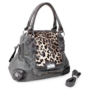 Zippered top leather like leopard front-printed cross shoulder bag with double croc pladded handles and an adjustable strap provides convenient carrying options. Carry your tablet/netbook with fashion in this ALL-IN-ONE purse.