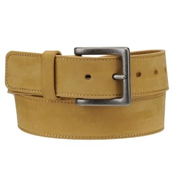 This belt is made to match the impressive quality of Timberland boots Nubuck or smooth leather Heat-crease stitch and logo detail Metal buckle with antiqued nickel roller finish 1-1/2" flat width Available in 32" to 42" length in 2" increments