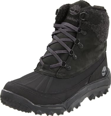 The Timberland Rime Ridge boot for men is perfect for all your outdoor winter adventures, whether you're snowmobiling or just shoveling the walk. The leather and fabric upper is sturdy and waterproof, with a cozy fabric lining and padded collar. Inside, 200 grams of Thinsulate provide extra insulation from the cold. The rugged, toothy sole provides protection and a solid step, while the lace-up front keeps the fit tight and secure.