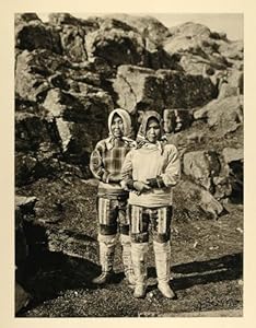 This is an original 1935 photogravure of two Eskimo girls in Greenland, wearing their sea-dog boots.