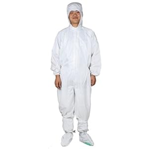 Note: The sizes in the above table are flat sizes of the overalls, please kindly check your measurement before ordering in order to buy right thing. Can be used in electronics, medicine, bioengineering, optics, aerospace, aviation and other industries. Zip up front, Hood and loop closure stand collar, Long raglan sleeve, Small pockets in one sleeve, You can clip you pen on the overalls as the loop in the chest/bust. Comes with a pair of soft sole shoes.
